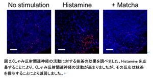 ここで、緑茶の面白い機能を紹介する。東京大学、広島大学、日本医科歯科大学が1026.03.23にプレスリリース「抹茶で花粉症も一服⁉ ―抹茶を飲むことでくしゃみを抑えられる可能性― 」
