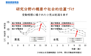先日のJST(科学技術振興機構)新技術説明会で福島県立医科大が受動喫煙に起因する小児肥満の予防又は治療剤と称する発表があった。